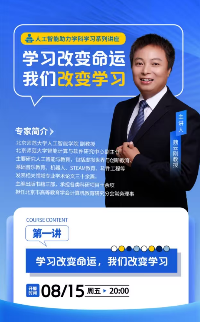 注:“人工智能助力学科学习”系列讲座由我们团队面向全国推出的学术分享,我们希望通过讲座,让大家看到学者的相关研究,让学者听到大家的声音。